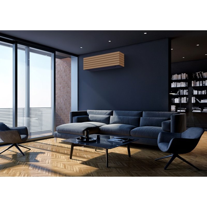 De Toshiba Daiseikai 10 Wood combineert hoogwaardige prestaties met een stijlvol houten design. Het PEFC-gecertificeerde houten frontpaneel geeft een natuurlijke uitstraling aan elk interieur. Dankzij de geavanceerde inverter-technologie is de airconditioner energiezuinig, stil en duurzaam, ideaal voor zowel koelen als verwarmen.