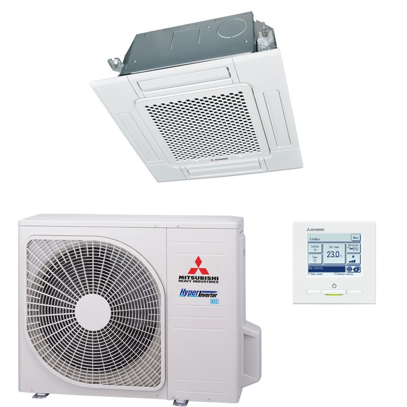 De Mitsubishi Heavy Industries FDTC40VH is een hoogwaardige 4.0 kW cassette airco, specifiek ontworpen voor naadloze integratie in een 60x60 systeemplafond. Deze Single-Split set combineert een discreet design met topprestaties op het gebied van koelen en verwarmen.