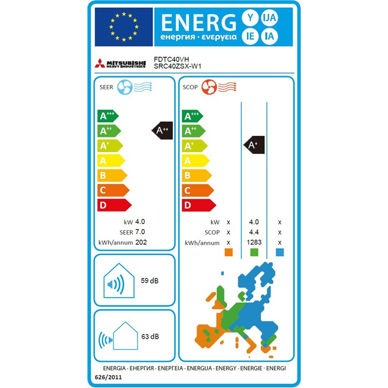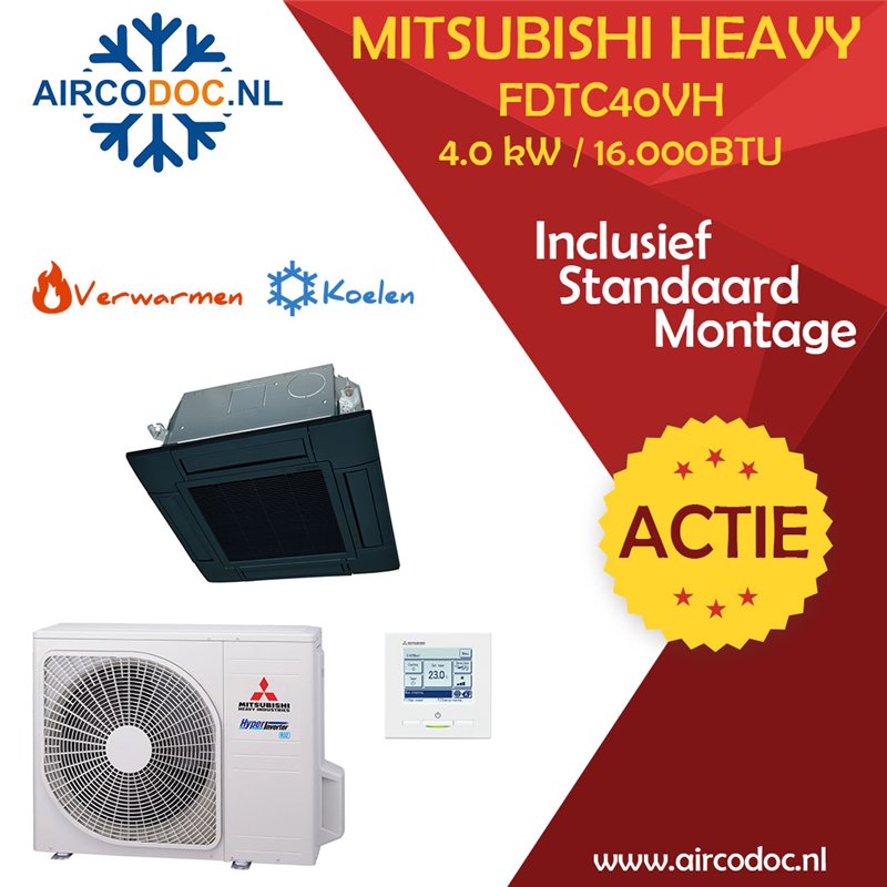 Airco Split Unit - Mitsubishi Heavy industries SRC40ZSX-W + FDTC40VH - vermogen 4.0 KW - incl. installatie - Zwart - 60x60
